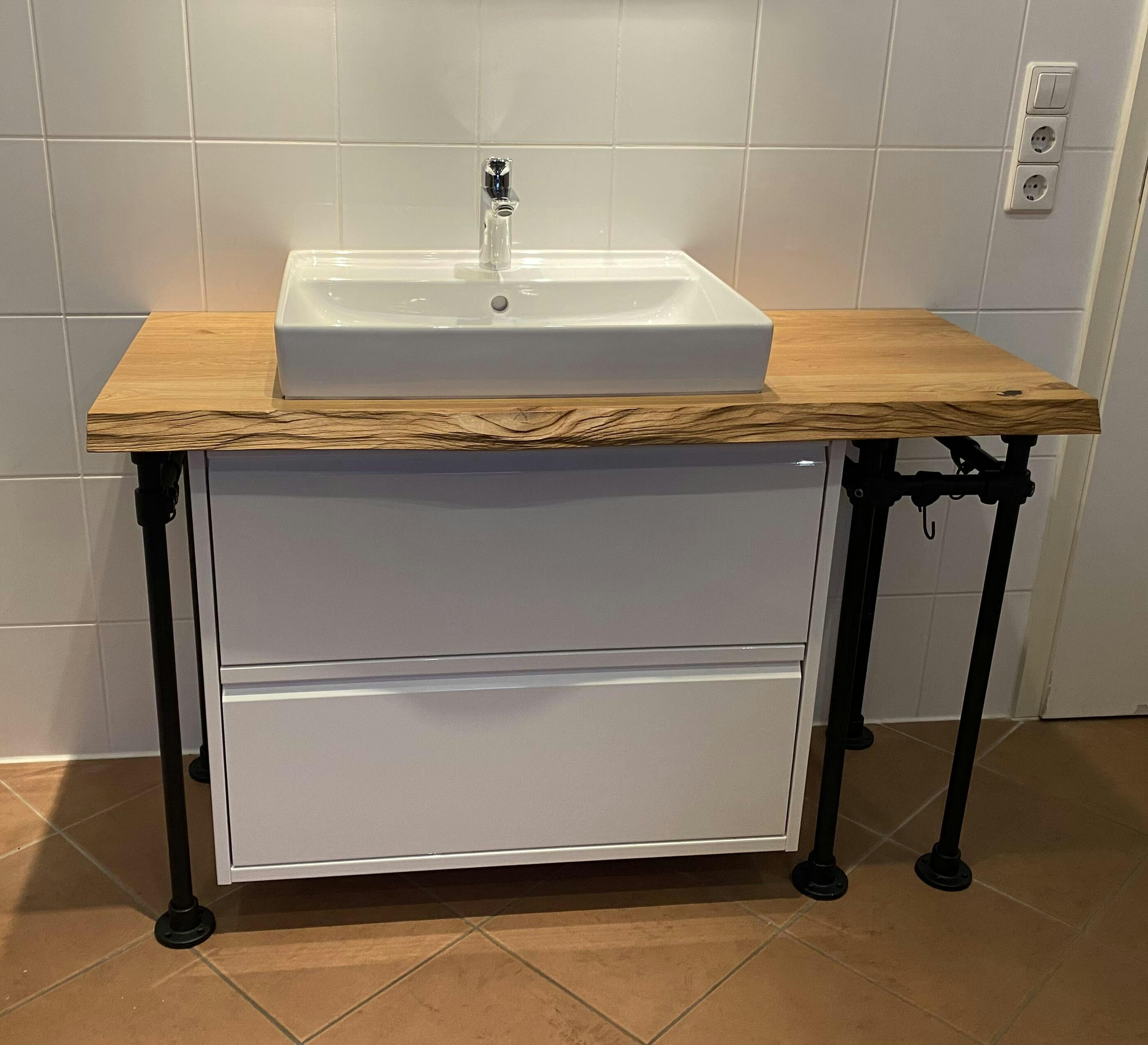 Unsere Platten eignen sich ideal als stilvoller Holzwaschtisch – einzeln oder kombiniert mit einem Untergestell.